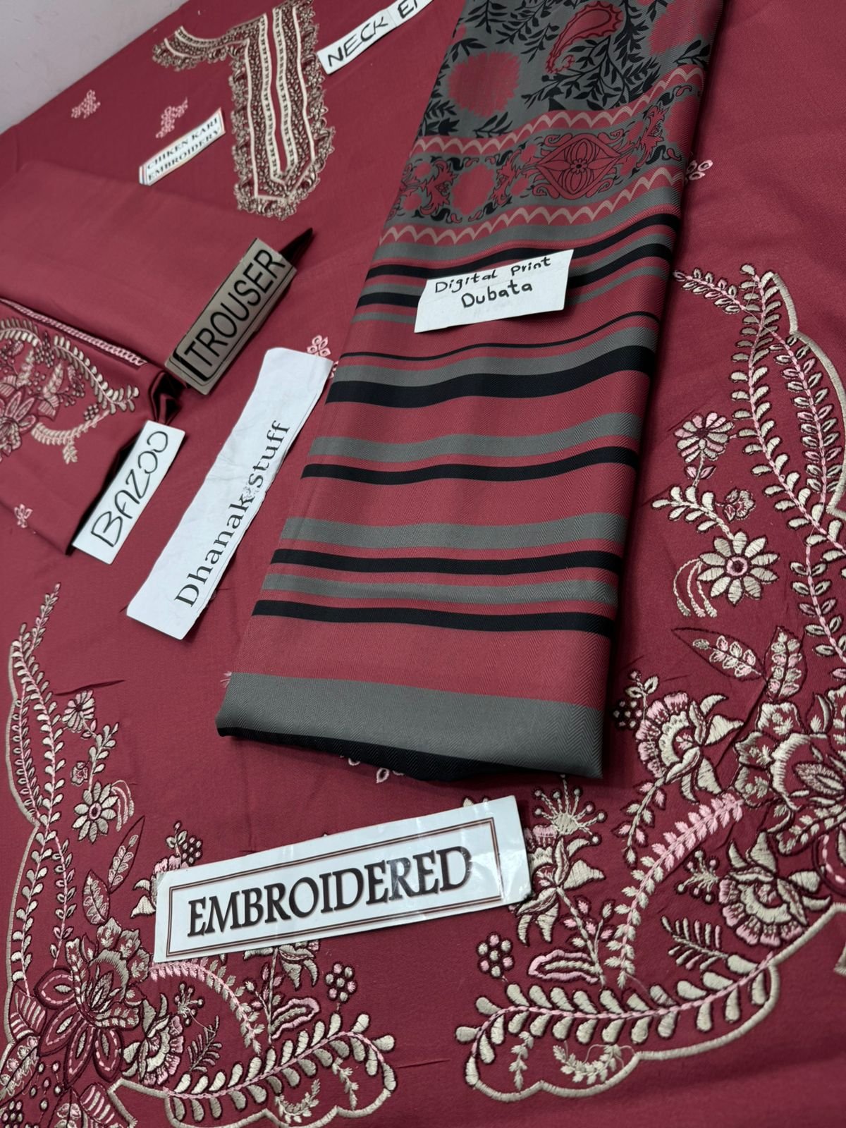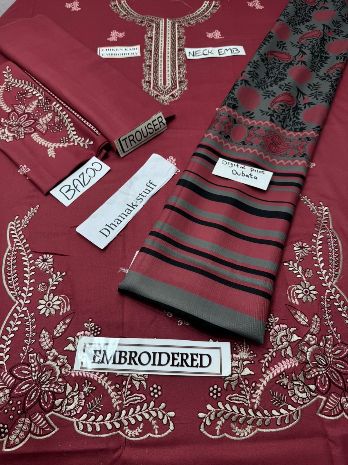 3PC Premium Dhanak Embroidered Suit with Embroidered Dupatta & Trouser | SI F-153