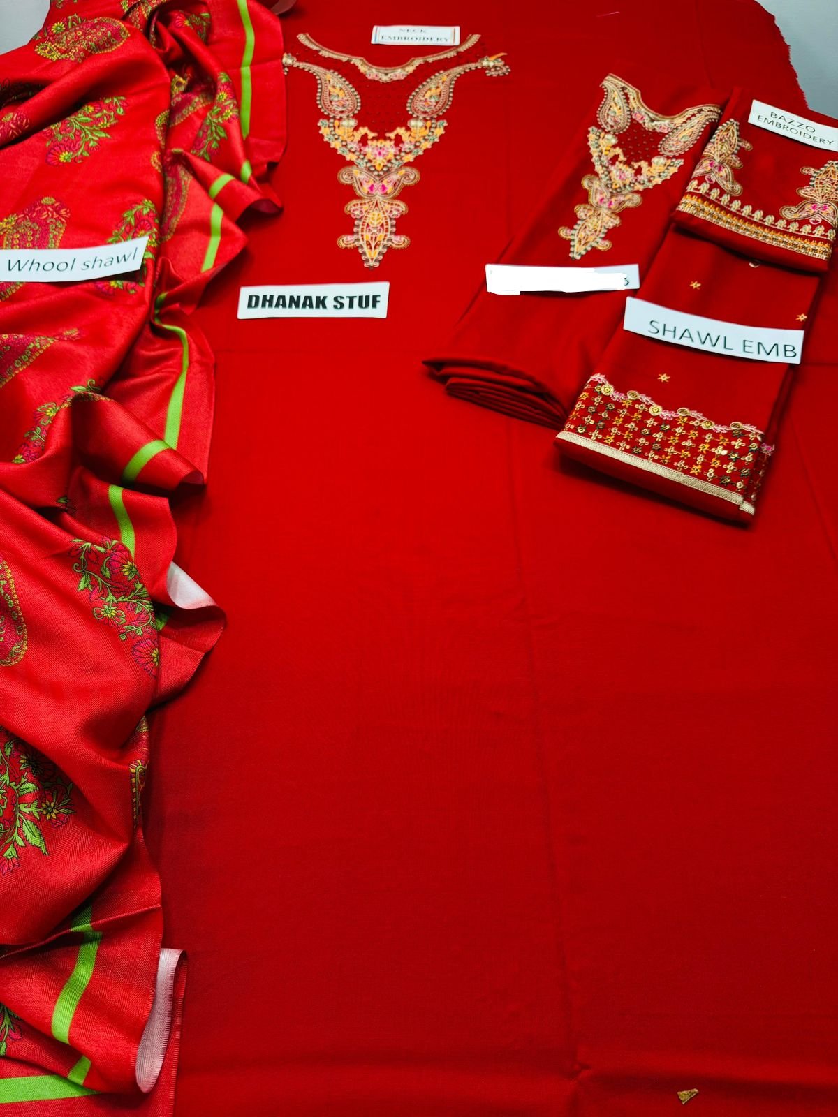 Premium winter fabric with embroidered neckline and sleeves