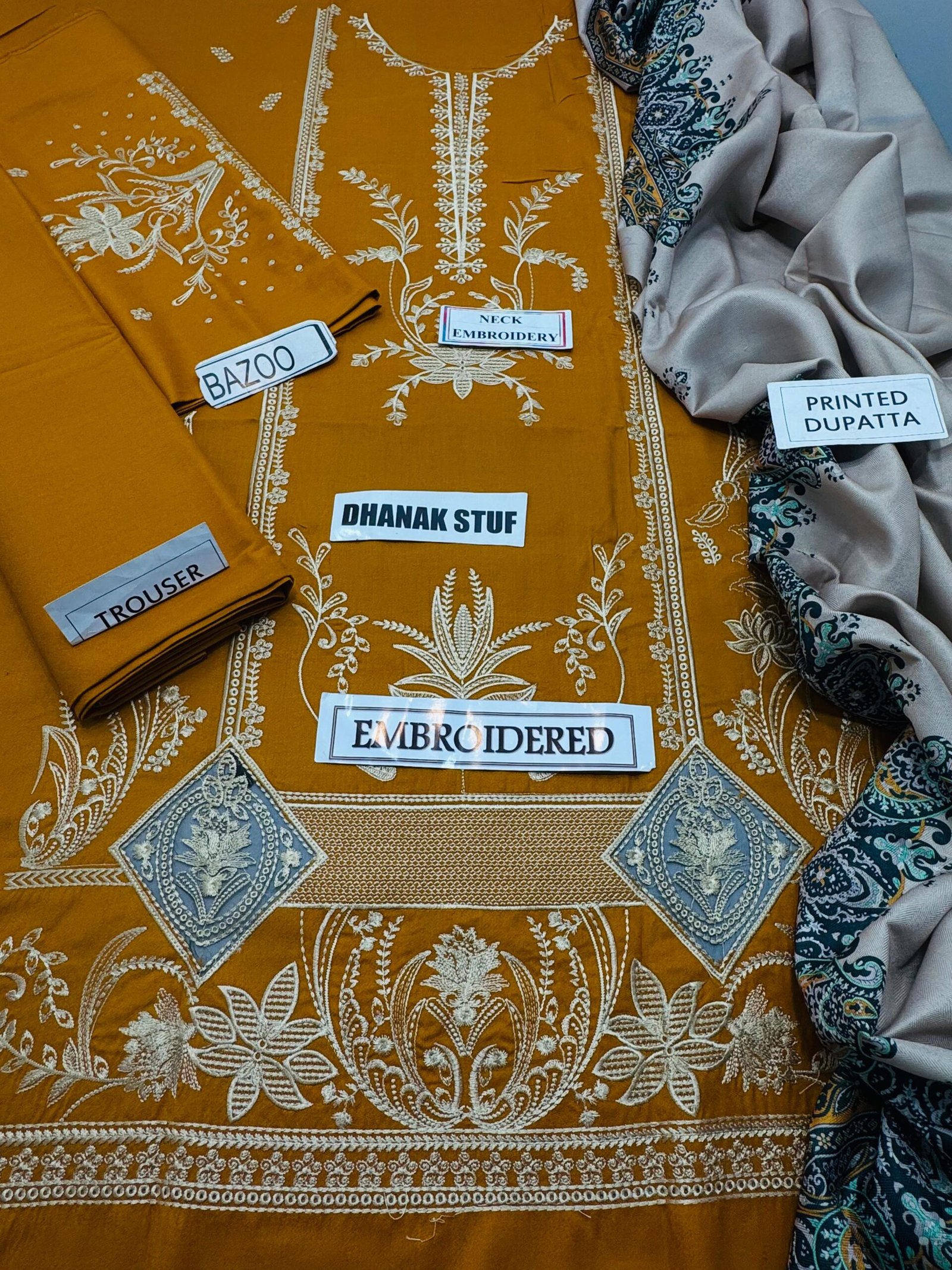 3PC Premium Dhanak Embroidered Suit with Printed Dupatta & Trouser | SI F-118