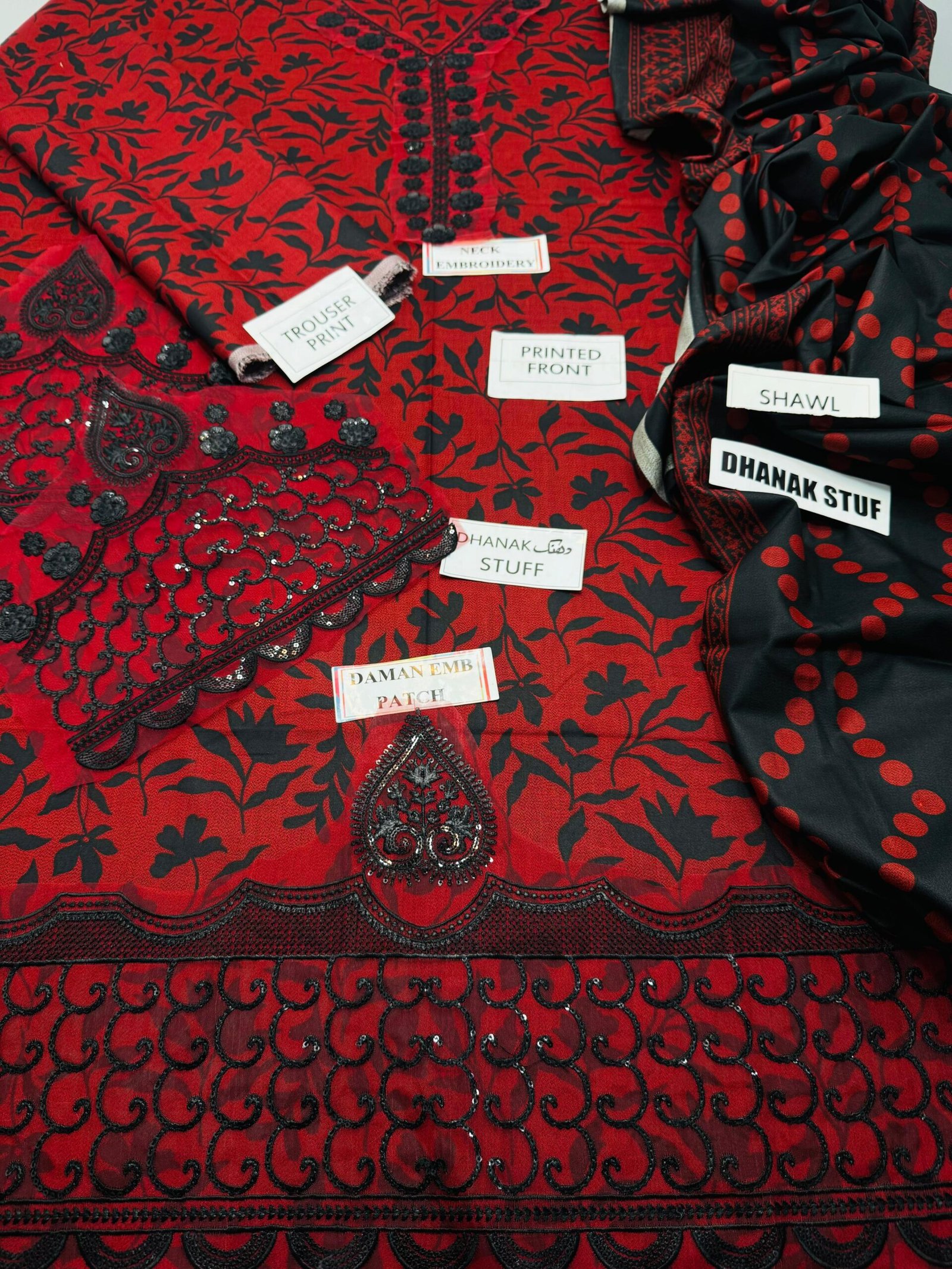 Description: 3PC Premium Dhanak Embroidered Suit with Embroidered Dupatta & Trouser | SI D-1005