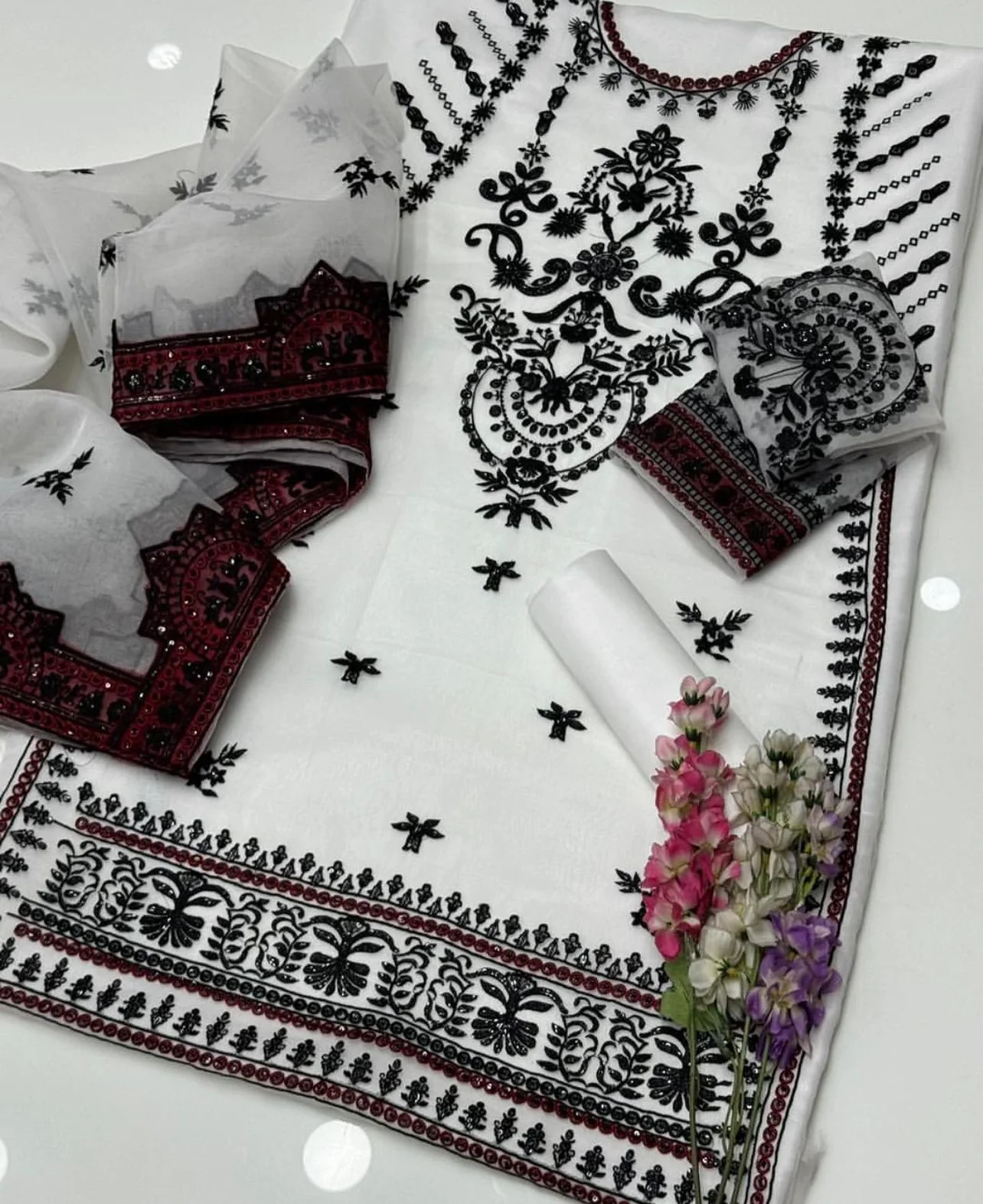 Premium Winter Fabric with Embroidered Front in Black & Maroon