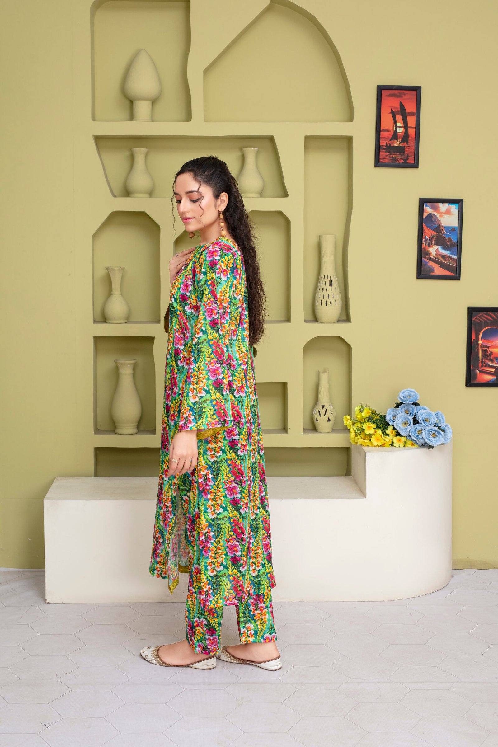 Digital printed lawn trouser width 62 inch