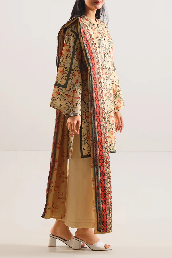 This Unstitched Printed Cotton Khaddar 3-Piece Suit By SAYA. Crafted From Traditional Cotton Khaddar—Beloved For Its Durable Weave And Natural Insulation—This Set Includes A Generous Printed Shirt Panel, A Complementary Printed Dupatta, And A Dyed Trouser Panel Ready For Tailoring. Khaddar Is Celebrated For Its Coarse Yet Breathable Texture, Offering Natural Warmth Without Bulk—Perfect For Cooler Climates While Remaining Lightweight And Stylish . Designed For Winter Gatherings, Everyday Cozy Wear, Or Festive Stitching, It Strikes A Balanced Blend Of Heritage Charm And Tailoring Freedom.